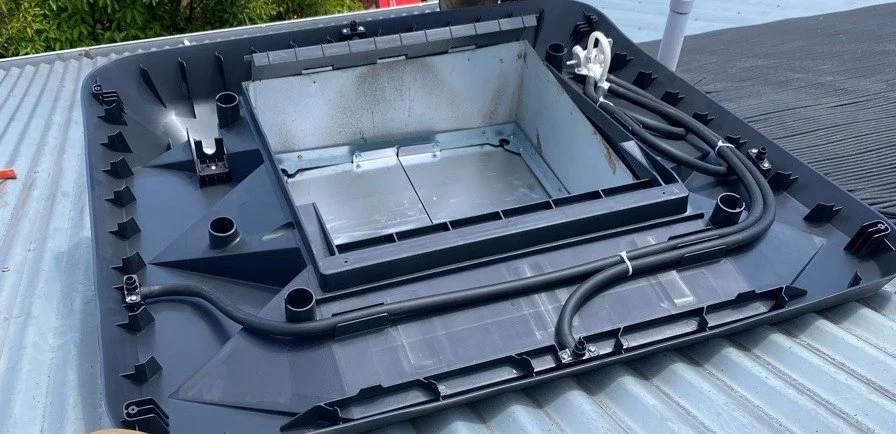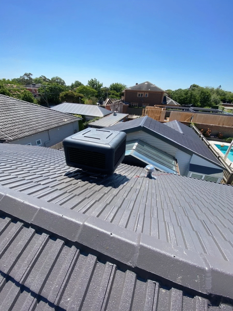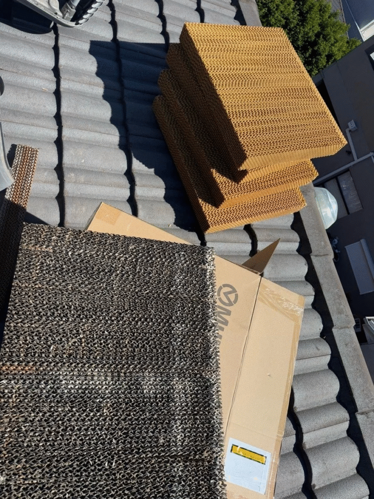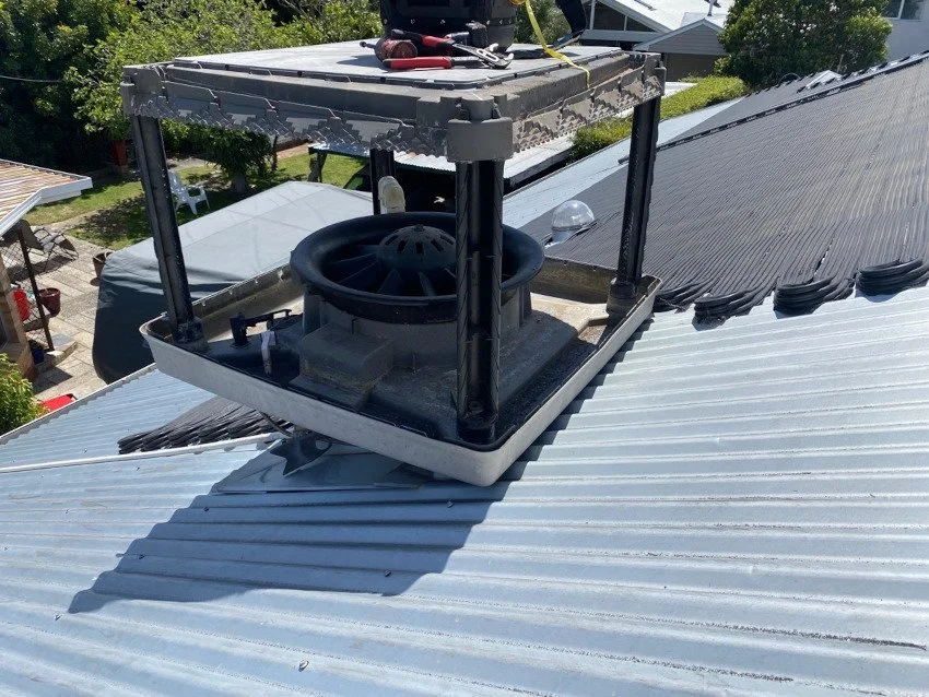 The Replacement of an Old Terracotta Evaporative Cooler with a new stylish charcoal Bonaire Unit…